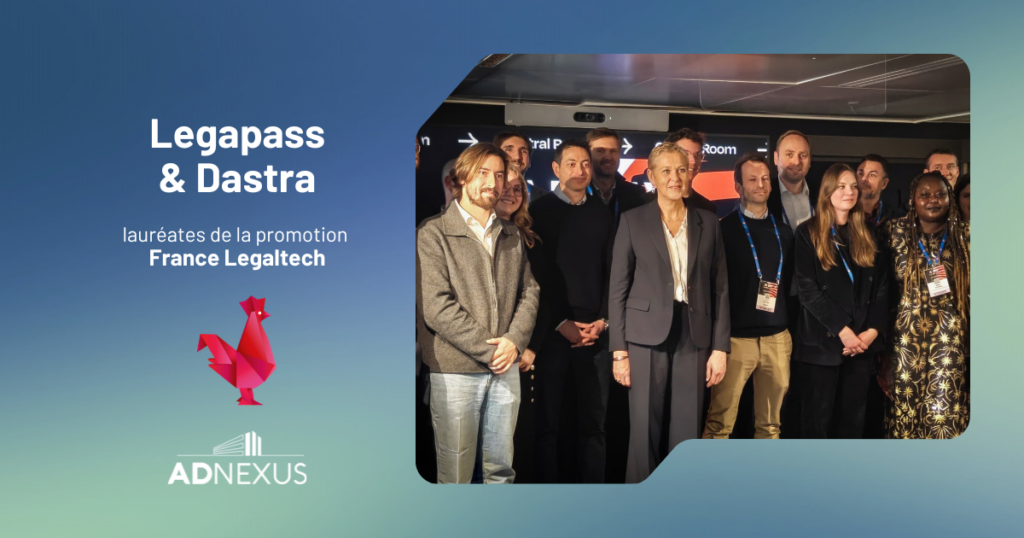 Deux startups françaises accompagnées par ADNEXUS, Legapass et Dastra, figurent parmi les 10 lauréats de la première promotion du programme France LegalTech. Une reconnaissance nationale qui souligne la vitalité de l’écosystème LegalTech et l’impact des solutions développées pour les professions réglementées.